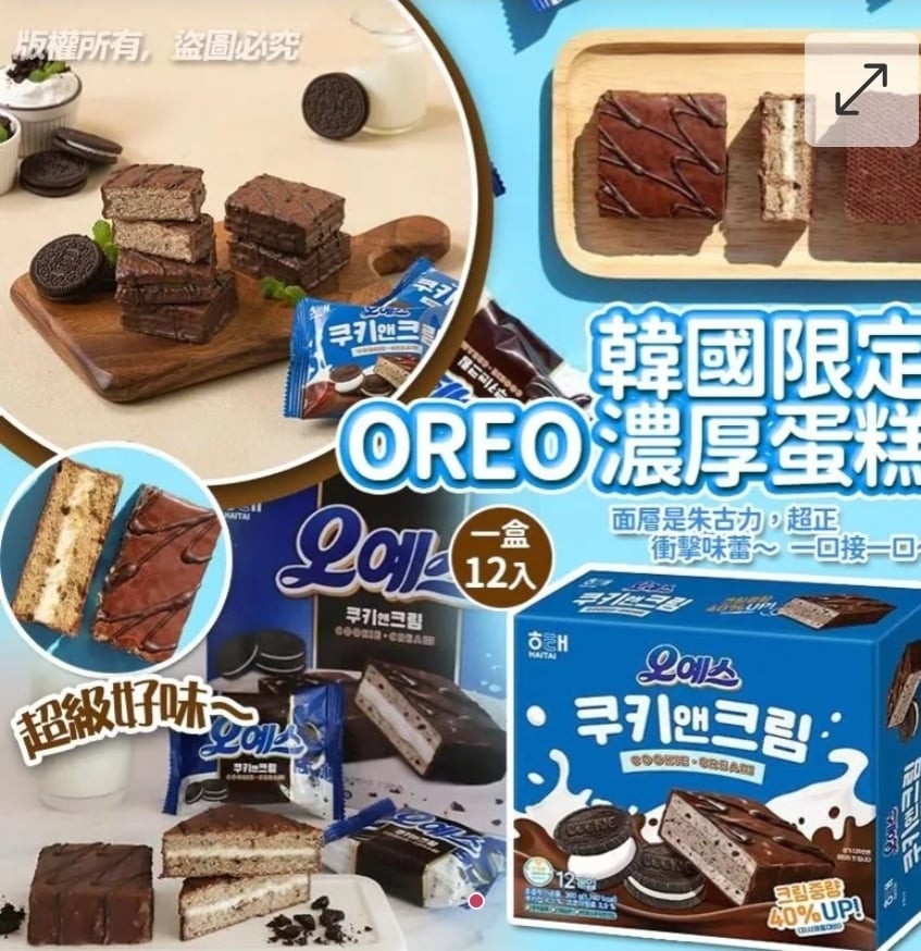 2盒$90共24入。韓國限定 OREO 濃厚蛋糕 (1盒12入)