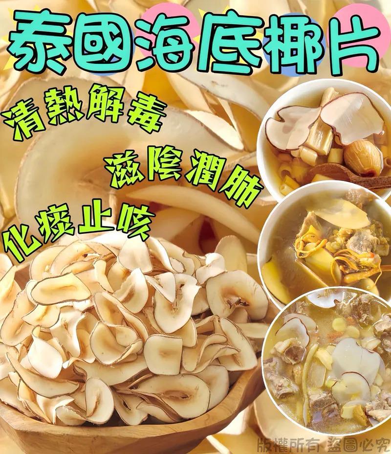 海底椰片以清燥熱💥止咳功效顯著🌟可以達到潤喉、滋潤、養顏嘅良好效果、經常煲湯飲可以減輕或防止乾燥🤩