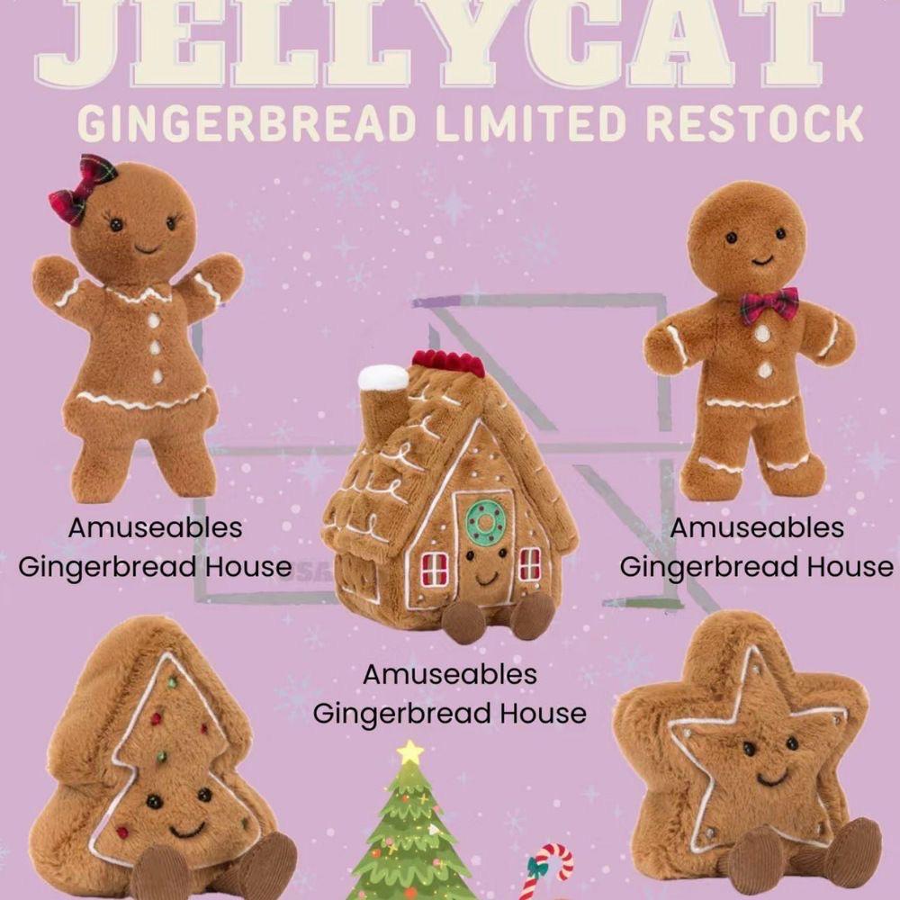 2隻起各减$5。 啫喱貓聖誕系列玩偶 截單日期:長訂 逢星期一11am / 售完即止 預計到貨日:3-6星期 🫶🏻產品不包括防塵袋 如需防塵袋+$8/個 🫚🏠薑餅屋 18cm💰108 ⭐️🍪星星餅乾💰78 🎄🍪聖誕樹餅乾💰78 🐧滑雪企鵝💰98 ❤️紅色bunny💰98 🐻聖誕版巴塞羅熊💰108 🦌🥜馴鹿花生💰78 🍪👦🏻薑餅boy💰88 🍪👧🏻薑餅girl💰88 🍆耳罩茄子💰88 🎄mini聖誕樹 $98 🎄聖誕樹 45cm💰118 🤍💐白金花環💰89 ☃️捲毛雪人💰78 🎄🐰聖誕樹兔18cm💰88 🍭🐰士的兔18cm💰88 🎁🐰禮物兔18cm$88 🍭士的💰78 🍬耳罩棉花糖💰88 🎿🧤滑雪手套💰98