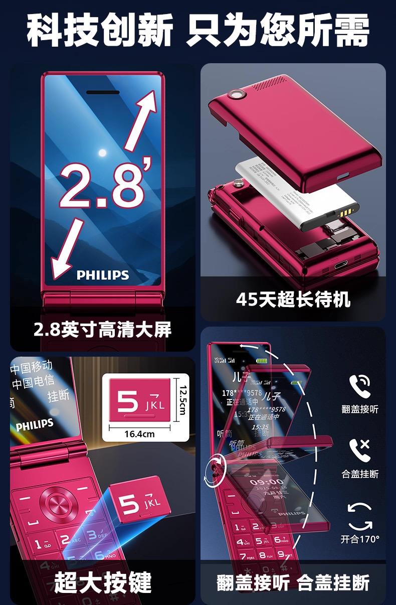 📦到貨日期:3-10天發貨 2025新款‼️$489件,2件起。$480件 Philips E6515+ 4G 老人機 📞特大高清屏幕2.8寸 📞內外屏設計 📞2300mah超大容量電池 📞翻蓋即聽,關蓋即關 📞大聲大字 📞可設SOS鍵 📞外置鍵電筒 📞黑白名單 📞升級TypeC充電 📞3C認證 📞黑 /紅 /金三色 🇭🇰香港行貨💪🏻一年保養