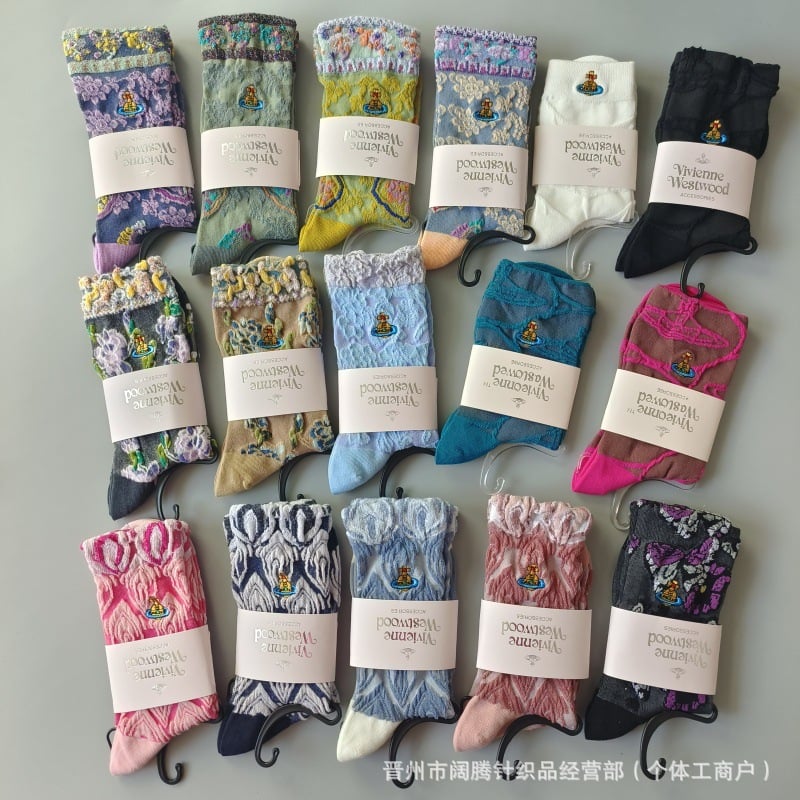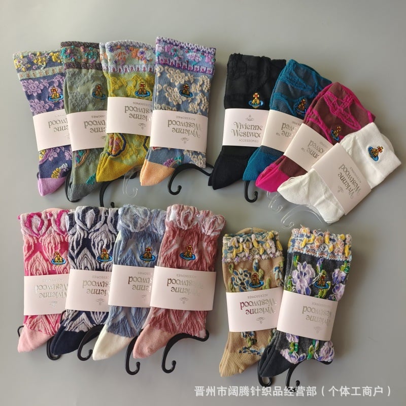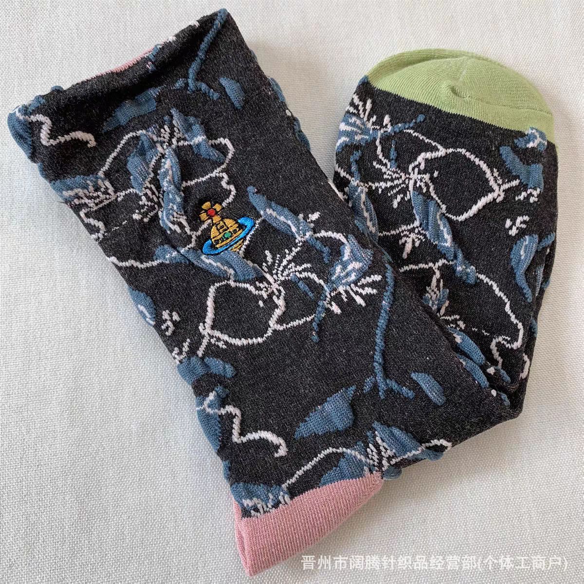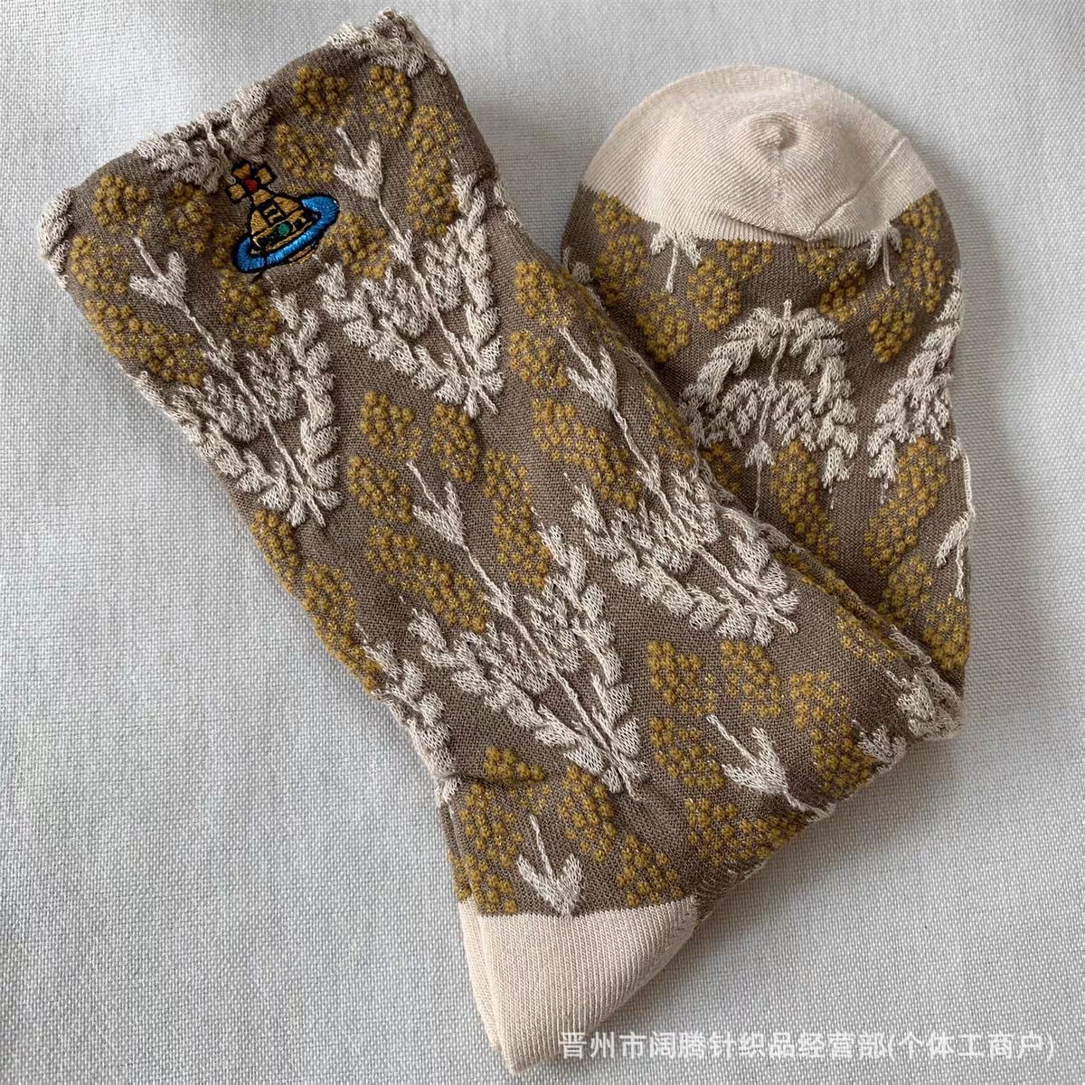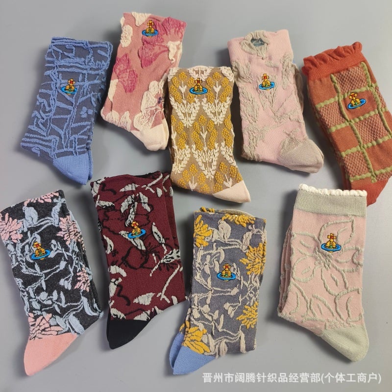 西太后土星立體提花刺繡中筒襪|復古花卉系列
