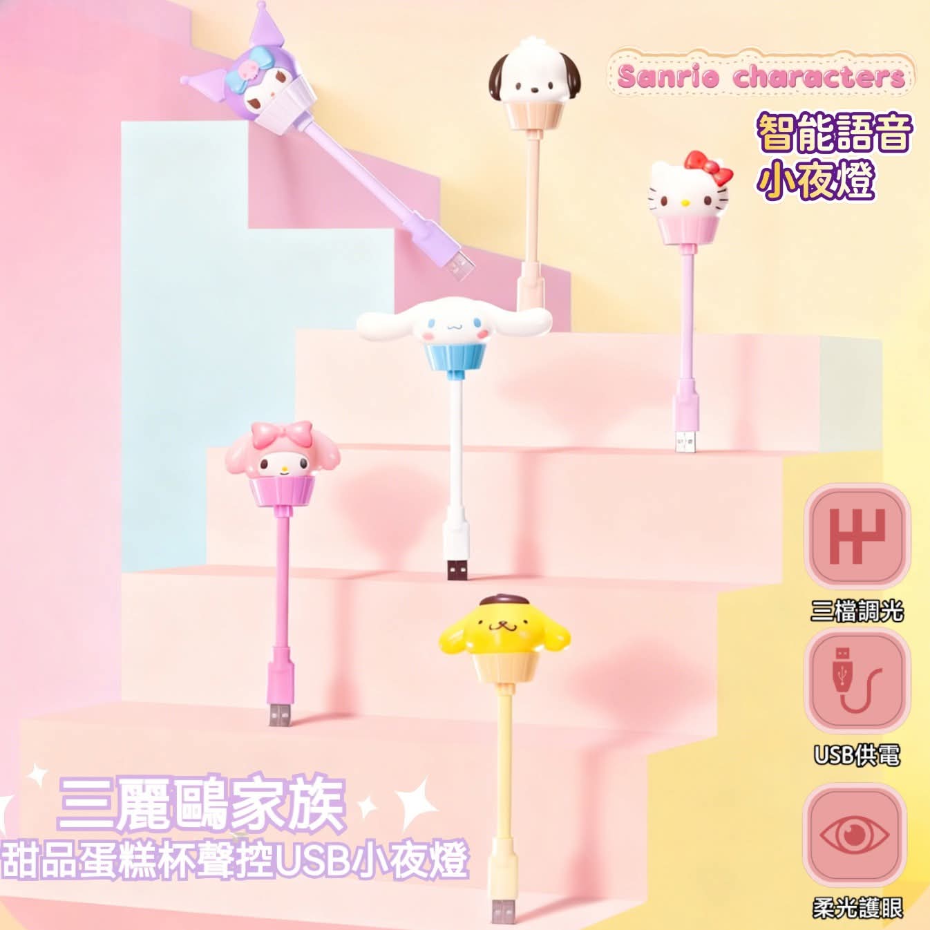 4款選擇/$55件。2件起$45件。🌟【Sanrio 甜品蛋糕杯聲控 USB 小夜燈】