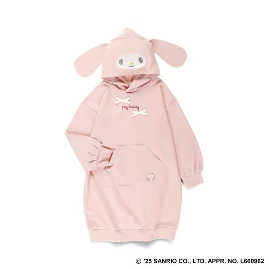 90-130 $99件,140-150 $105件,2件起各減$ 10。日單Melody/Kuromi薄絨連帽衛衣裙