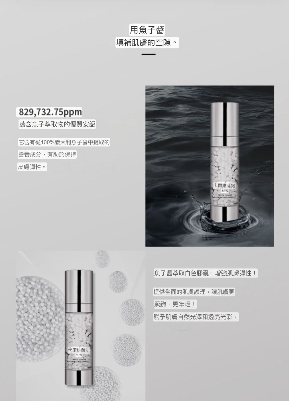 Calvisano 白金魚子亮膚安瓶。$380支。2支起$370支。