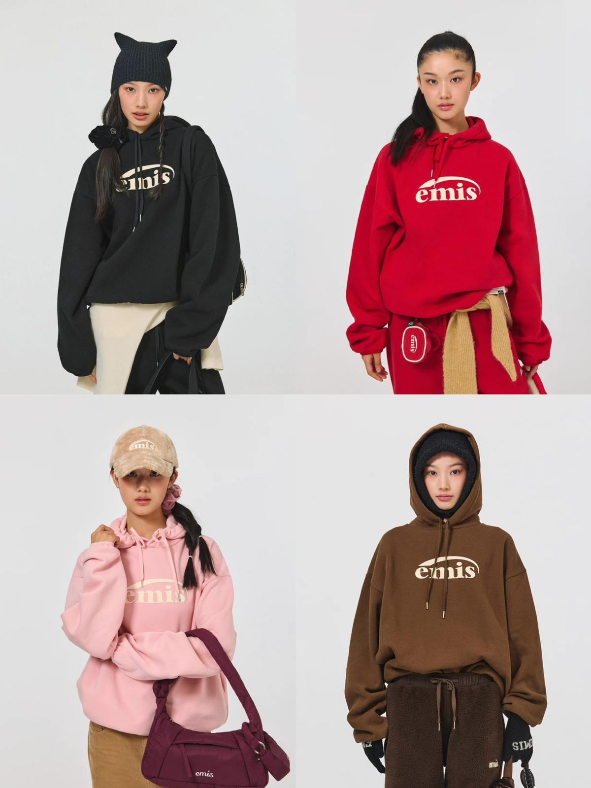 Emis經典logo連帽衛衣$128件。2件起$118件。