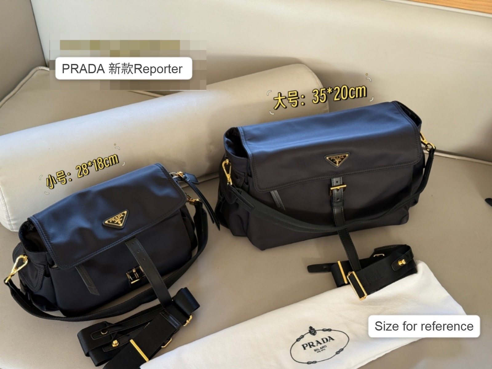 PRADA 2025新款 Reporter 郵差包 💼 PRADA Reporter 高級郵差包 時尚實用兼備的新寵登場!這款PRADA Reporter郵差包以簡約俐落線條搭配品牌經典三角LOGO,低調卻極具辨識度✨ 特點亮點: 🌧️ 防水尼龍面料:輕盈耐磨,日常使用不怕小雨或潑水。 🖤 經典黑金設計:搭配金屬扣件與皮革細節,展現高級質感。 📦 多口袋收納設計:主隔層容量充足,可輕鬆放入手機、錢包、筆記本或小平板;側袋實用方便取物。 🎒 可調節肩帶:自由調節長度,單肩或斜背皆時尚。 🧳 男女皆宜的中性風格:無論通勤、旅行或休閒穿搭都非常百搭。 --- 尺寸選擇: 小號:📏 28 × 18 × 10 cm — 適合日常出門、輕便搭配 大號:📏 35 × 20 × 12 cm — 容量更大,可放A4、iPad等物品 小號:HK$578 大號:HK$638 ✨ 推薦理由: 簡約又耐看的一款PRADA郵差包,功能與時尚兼具,無論是日常使用或送禮都非常實用! ⚠️ 聲明及注意事項 ⚠️ ⭕顏色或因拍攝器材或顯示螢幕等因素而與實物有異,以上圖片及文字僅供參考,一切以實物為準 ⭕外國進口貨品之貨期或受船運/空運延誤影響,恕不接受貨期延誤原因取消訂單,下單前敬請諒解 ⭕本店並沒有持有任何品牌之版權. 所有商標及版權均屬該品牌持有人, 圖片及資料轉載只作分享用途。商品圖檔顏色因電腦螢幕設定 差異會略有不同, 以實際商品顏色為準, 所有圖片只供參考 。 ⭕ 部份外國進口商品會附有中文標籤(繁體/簡體),以貨件到步為準。 ⭕本店屬代購角色,所有有關貨品之責任,例如品質、真偽等,本店將不會作出任何承擔或法律責任 ⭕客人一經落單後即對所有條款細節清楚明白及接受,管理員擁有最終決定權,本店屬代購角色,所有有關貨品之責任,本店將不會作出任何承擔或法律責任。 ==⚠️ 聲明 ⚠️== 本貨品為平行進口 所有帖文內容只作分享及參考用途。為免混淆視聽,所有商標或版權均屬有關商品品牌商標的持有人,敬請留意 ⭕顏色或因拍攝器材或顯示螢幕等因素而與實物有異,以上圖片及文字僅供參考,一切以實物為準 ⭕外國進口貨品之貨期或受船運/空運延誤影響,恕不接受貨期延誤原因取消訂單,下單前敬請諒解