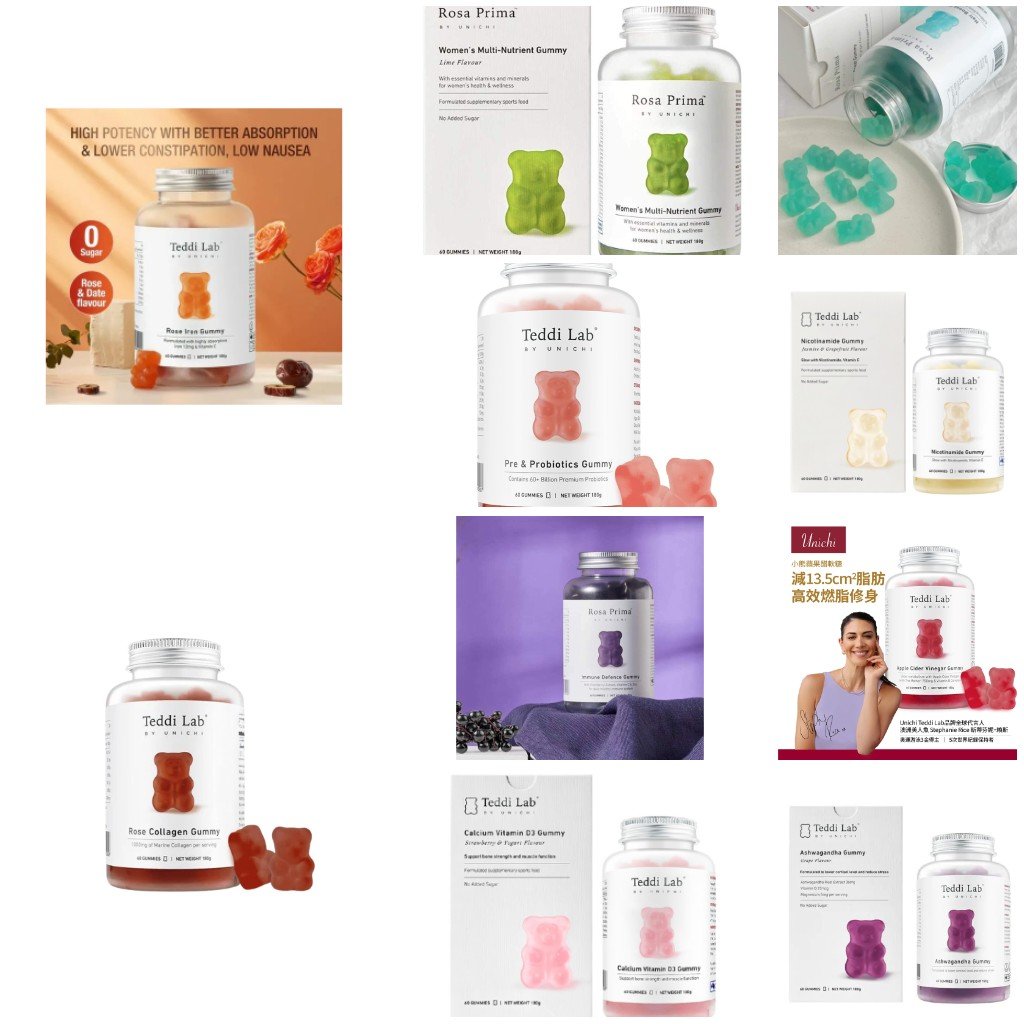 Unichi澳洲保健產品系列。2樽起各减$ 10 🩷澳洲🇦🇺Unichi鈣+D3小熊軟糖60粒 $115樽 久坐沒時間運動,又不喜歡曬太陽的最適合吃這個澳源優馳Teddi Lab的軟糖了。酸酸甜甜草莓酸奶味,每天兩粒,補鈣同時補D3,雙管齊下,促進鈣吸收。促進骨骼和牙齒健康,腰不酸腿不疼,吃嘛嘛香。 ----- 💜Unichi南非醉茄小熊軟糖60粒($130樽) 連鎖店賣緊$198 保養要趁早💕內調調理好,氣色好,身體好,皮膚好,越來越漂亮 💗南非醉茄小熊軟糖,緩解焦慮,舒緩情緒 ✅臨床實證 壓力大減23%* ✅舒壓助眠 調節情緒 ✅高含量南非醉茄 ✅3大天然成分 提升身心靈健康! 💜巨峰提子味 💜0添加糖 ----- 🤍Unichi煙酰胺美白小熊軟糖 60粒($ 130樽) 原價$198 澳洲銷量NO.1^! 含優質澳洲玫瑰果萃取及多種亮膚成分,包括煙酰胺(維他命B3)、維他命 C 和 E: - 抑制黑色素,防止色素沉著 - 淡化色素沉澱 - 減少曬後斑點 - 改善膚色和質感 - 修補暗沉肌膚 - 促進膠原蛋白的形成 - 改善肌膚水分和彈性 - 抵抗自由基傷害 為改善頭髮、皮膚和指甲的整體健康,搭配以下產品更佳: 小熊爆髮軟糖和小熊玫瑰膠原蛋白軟糖 ----- 🐻澳洲Unichi玫瑰膠原蛋白小熊軟糖60粒🐻Rose Collagen Gummy $110樽 連鎖店賣緊$195 👍🏻👍🏻超方便嘅膠原蛋白補充劑 💥💥IG爆紅💥💥 個個鬼妹仔試過都Like到爆😍😍 ✅含有天然玫瑰花瓣和海洋膠原蛋白,玫瑰果口味 ✅不添加糖,口感Q彈,可口美味小熊造型,十分可愛 ✅每2粒小熊含1000mg海洋膠原蛋白,玫瑰沁香,0脂肪,0蔗糖,超低卡路里 ✅核心成分為海洋膠原蛋白,玫瑰花,玫瑰果,針葉櫻桃,讓膠原蛋白整日充盈 ✅膳食補充劑,攜帶服用簡單,快捷,溫和易吸收,強化您的營養和能量 仲要有埋認證🏅🏅 最好味嘅軟糖補充劑就係佢👍🏻👍🏻 1️⃣海洋膠原蛋白-補充膠原蛋白,增加肌膚含水量 2️⃣玫瑰花-富含花青素,且香味宜人 3️⃣玫瑰果-含豐富維生素C及多種抗氧化成份 4️⃣針葉櫻桃-超豐富維生素C,能抑制自由基生成 📦規格:60粒 ----- 🟣Unichi黑接骨木免疫力小熊軟糖 60粒🟣 $115樽 體力差❌愛熬夜🏙️易疲勞必備 酸酸甜甜莓果味,0糖低脂低卡😋 ✴️提升免疫力、抗病毒,搭配維他命C、鋅, 免疫更有效~ 全面提升健康自護力! ✴️黑接骨木口味,酸甜好滋味,大人小孩都能吃👍🏻 ❇️使用方法: 兒童成人皆可用, 4歲以上兒童一天1粒,成人一天2粒。 2粒=1000mg黑接骨木莓,3倍活性多酚 ------- 🍎澳洲Unichi蘋果醋小熊軟糖 消化飽腹廋身配方60粒($115樽) 連鎖店賣緊$198 味道是酸酸甜甜的蘋果檸檬味,一口下去果汁感爆棚 巨好吃!0糖低脂,每2顆蘋果醋含量有750mg。和同類品相比添加了酵母,含有豐富益生元 ,添加葉酸、維生素b6、b12能夠更好促進營養吸收和轉化。飯前吃兩顆,增加飽腹感,不怕吃到扶牆!最直觀感受的就是不那麼容易嘴饞了~ ----- 🧡Unichi澳洲成人益生菌小熊軟糖粉色 60粒 Pre & Probiotics Gummy(橙紅色)$117樽 連鎖店賣緊$198 便祕必備!Q彈的玫瑰酸奶口味,0蔗糖,低熱量,超級可愛,幫助有益菌增殖,增強腸道抵抗力,促進腸蠕動,改善便祕,減輕身體負擔,維穩健康腸胃 ----- 🩵新版澳洲Unichi 海鹽生髮小熊軟糖60粒Plus🩵($135樽) 香港連鎖店賣緊$208 0糖低脂的清爽海鹽青提味 熱量不超過 4分之一個蘋果,健身減脂也沒在怕👍 堅持每天2顆小絨髮迅速冒出來😘 不管男女老少都很在意脫髮問題,頭禿生活要趕緊補救!內服護髮要趁早! 想要養好頭髮單從外部養護真的遠遠不夠,真心建議從內服開始調理護髮強韌發芯、改善毛囊和頭皮健康,改善脫髮 Hair Boost Gummy是一種科學定製的配方,含有高生物素、鋅和多種維生素(維生素A、維生素C、維生素E)。 它有助於防止脫髮,促進頭髮生長、強度和厚度。 它還可以幫助阻止頭髮斷裂,並從內部滋養你的頭髮。 ◆生物素和鋅能幫助角蛋白生成,能修護髮芯強韌秀髮,而泛酸能促進毛囊細胞生長,維持毛囊健康,最後再維生素A、C、E多效合作下,維持角質正常代謝,守護頭皮健康,使秀髮亮澤更柔順。 ◆海鹽和綠葡萄的味道 【服用方法】 每日2粒咀嚼服用。 【注意事項】 不適合12歲以下的兒童。 ---- 💚Unichi 女性多種維生素小熊軟糖 60粒(綠色)$115樽 連鎖店賣緊$198 女性多營養軟糖的配方旨在滿足女性忙碌時的營養需求。 這種多營養素含有十幾種對女性健康有益的必需維生素和礦物質,有助於保持健康的頭髮、皮膚和指甲,同時還支持能量、新陳代謝和免疫系統。還包括幾種強大的抗氧化劑,它有助於減少自由基對身體細胞的傷害。 👍🏻能量提升 - 8 種 B 族維生素和鎂 👍🏻強健骨骼 - 維生素 D3 + 鈣 + 磷 👍🏻增強免疫力 - 8 種礦物質:鈣、鎂、磷、鋅、鉻、鐵、硒、碘 👍🏻皮膚和頭髮護理 - 維生素 B2 + 維生素 B3 + 維生素 E + 生物素 ✨建議食用方法:成人每日咀嚼2粒。 ✨儲存方法:避免陽光直射,置於乾燥通風的地方。避免兒童接觸。 ✅產地 : 澳洲 ✅規格 : 1樽60粒 ----- Unichi玫瑰富鐵小熊軟糖60粒 (Rose Iron Gummy) $116樽 連鎖店賣緊$198 如果你們蹲的時間久了站起來頭會暈的話一定要注意哦這就需要補鐵 這款Unichi玫瑰富鐵小熊軟糖就很適合哦 堅持吃一段時間之後姨媽期再也不像渡劫了四重温和鐵、復配針葉櫻桃、玫瑰提取物直接就是一整個補鐵高階配置他家內服是尊嘟有用啊 想要內調來養生的真的可以試試哦 -----